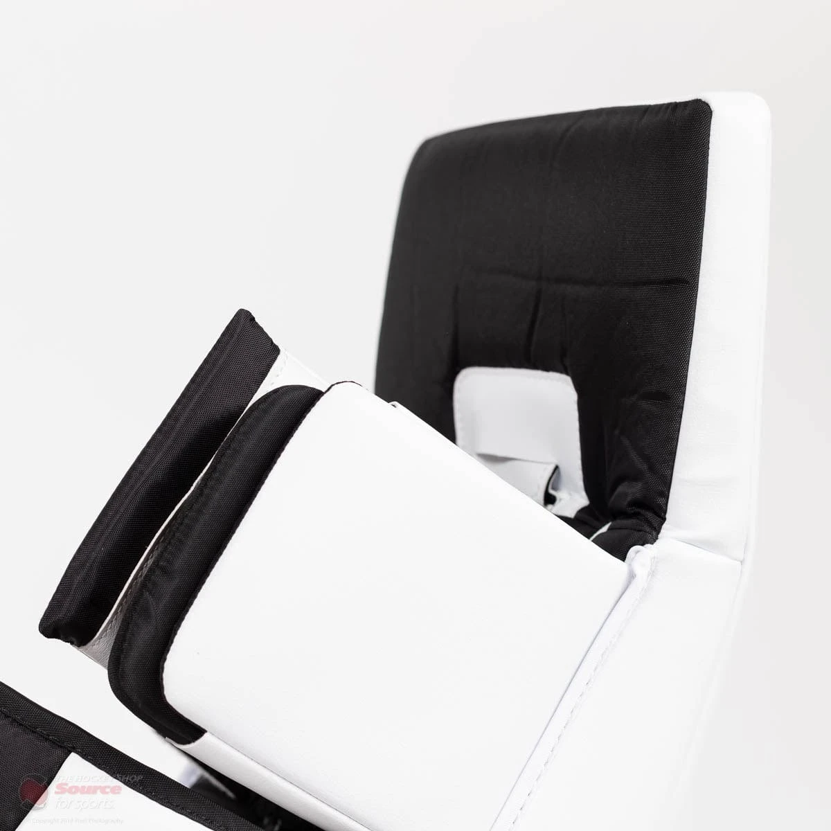 The leg channel features a Smart Strap to secure the pad to your leg. The beefed up secondary level has a buckle strap. The inner knee stacks feature one thick velcro elastic strap. There is also a smart strap for the boot strap, and a separate smart strap for the toe strap.
