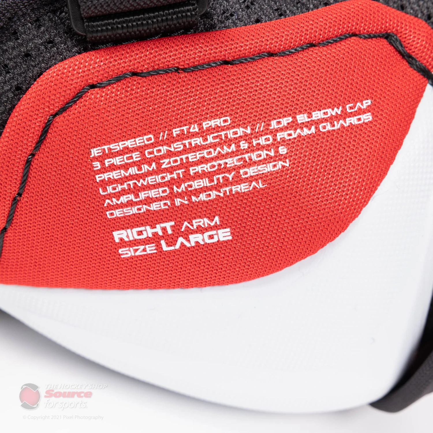 The CCM Jetspeed FT4 Pro Senior Hockey Elbow Pads are available in sizes Small, Medium, Large, and Extra Large. Check out our size guide to find the perfect fit.