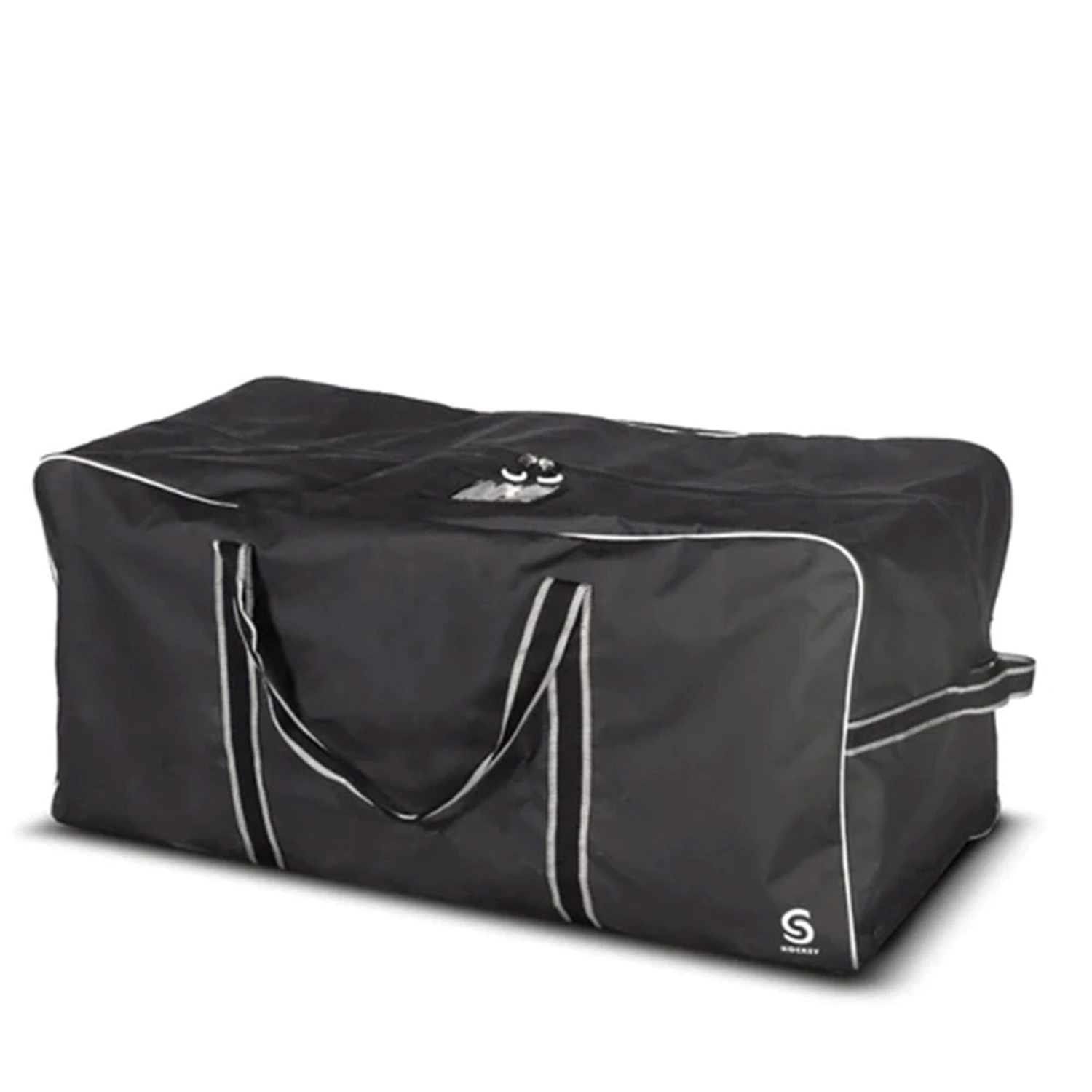New to this season is the Source For Sports Blackedge Pro Senior Goalie Carry Bag. This bag covers all the bases with its durable tarpaulin construction, large compartment, Durable twill handles with Velcro attachment , and sleek monochrome design.